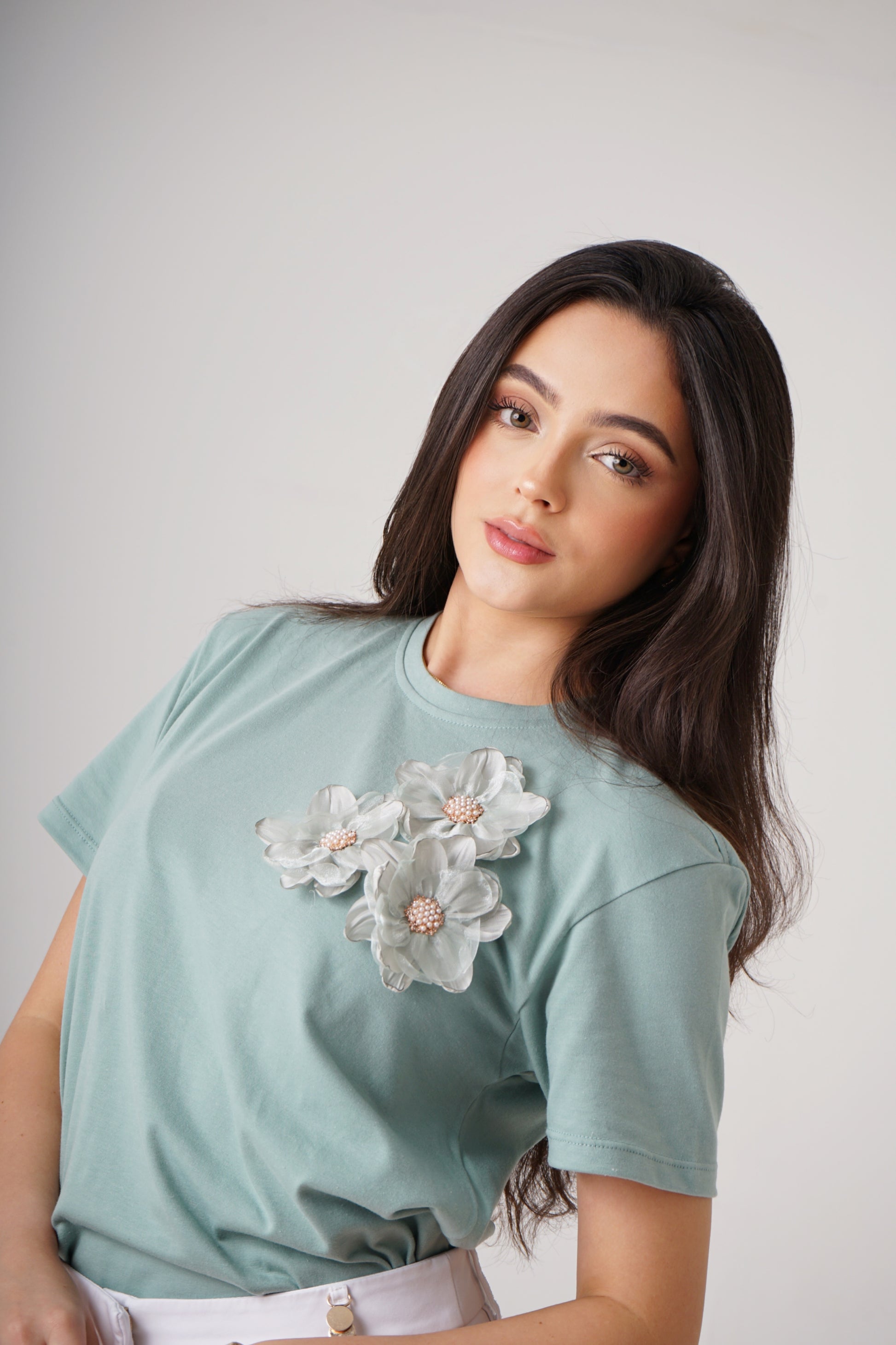 Ideal para días cálidos y salidas con estilo, esta camiseta se adapta fácilmente a outfits casuales con faldas, jeans o pantalones cortos. Un básico con detalles que eleva tu clóset.