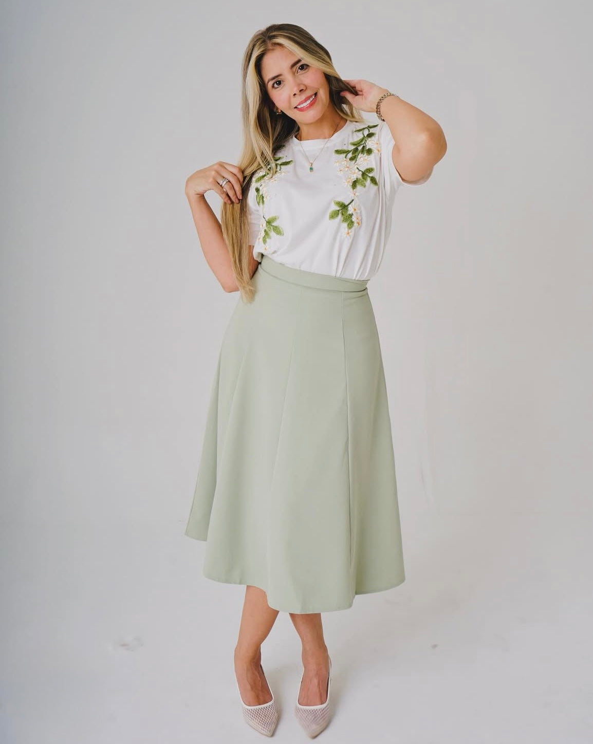 Combínala con jeans claros, faldas suaves o pantalones en lino.